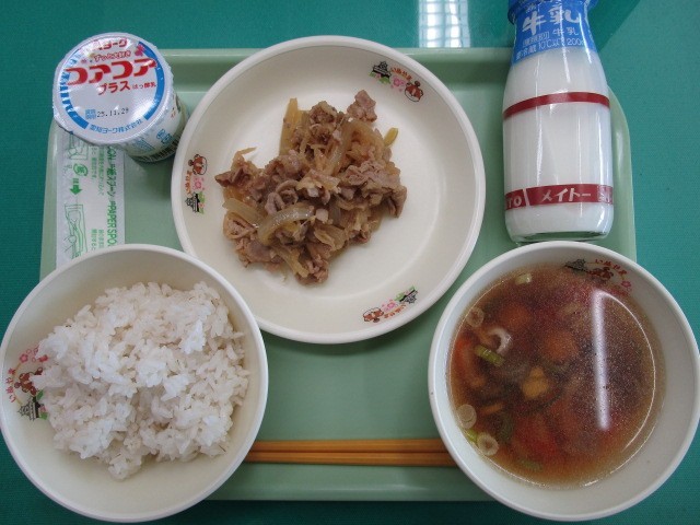 麦ご飯 牛乳 豚肉の生姜焼き けんちん汁 ヨーグルト