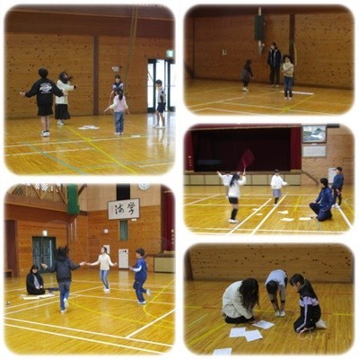 1・2年生は体育、3・4年生は音楽、5・6年生は外国語の様子です。みんなでがんばっていますね。