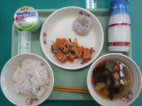 麦ご飯 牛乳 タコライス パスタと白菜のスープ はちみつレモンゼリー
