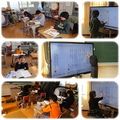 授業の様子です。国語や算数など、各学年がんばって学習に取り組んでいます。