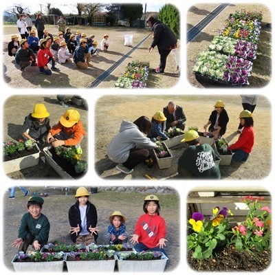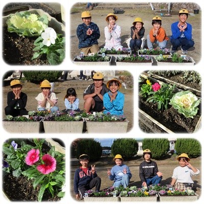本日の昼の時間に、一人一台プランターの花の植え替えをしました。ビオラ、葉牡丹、ダイアンサス、色とりどりでとてもきれいです。これから元気に育ってくれるといいですね。