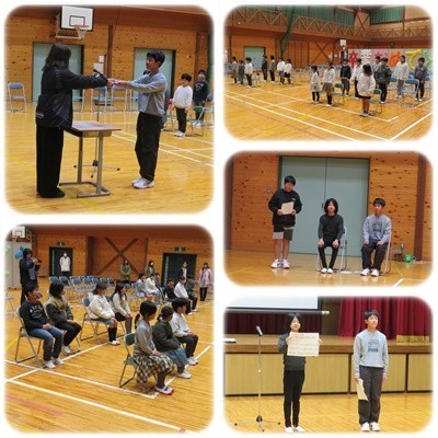 本日の朝は全校朝会を行いました。鳥検定と体力テストの表彰を行った後、6年生から3月の生活目標について話がありました。7年度の学校生活ものこりわずかです。最後まで、全員で力を合わせてがんばっていきましょう。