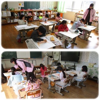 1・2年生の図工では、新1年生に向けて絵を描いていました。新1年生のみなさんがよろこんでくれるといいですね。