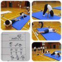 1年生が校内見学をしています。5.6年生教室に来たら、急におよびがかかりました。1年生と5.6年生が自己紹介です。