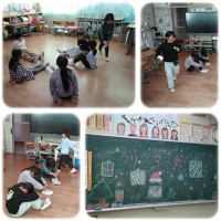 1年生2年生が「たぬきの糸車」の紙芝居をそれぞれ作って発表会です。