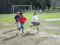 5・6年生は、体力テストの一環で、ソフトボール投げをしています。はじめに担任の先生が手本として、驚くほど遠くに飛ばしました。先生の後に続けとばかりに、みんながんばって投げています。