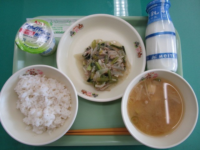 麦ご飯 牛乳 ねぎ塩豚丼 さつまいも入りみそ汁 ヨーグルト