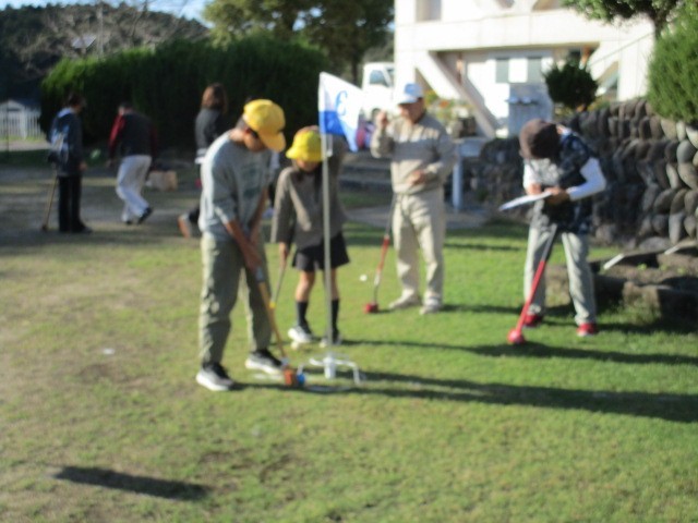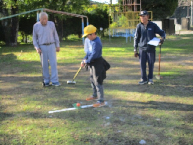老人クラブの方々をお招きし、3~6年生はクラブの時間にグランドゴルフを行いました。秋晴れの下、みんなで楽しく活動できました。