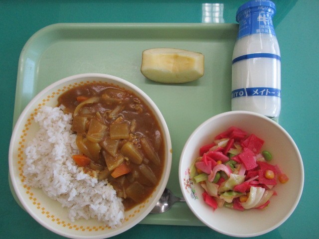 麦ご飯 牛乳 カレー 枝豆サラダ りんご