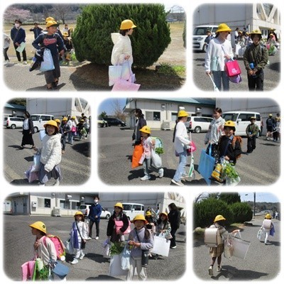 児童のみなさんが元気に下校をしました。令和7年度、みなさんのすてきな笑顔がたくさん見られて、とてもうれしかったです。春休み明けも、みんな元気に登校してきてくださいね。1年間よくがんばりました♪
