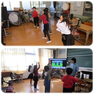 1・2年生の音楽では、今日も元気にパプリカの踊りを練習しています。