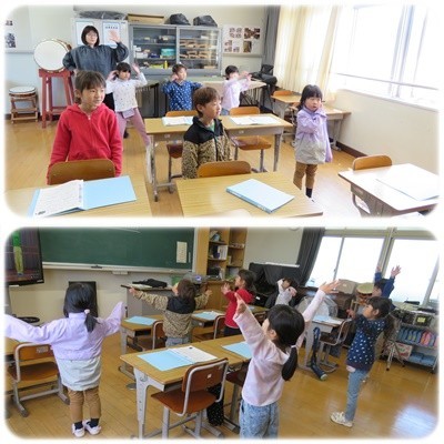 1・2年生の音楽では、「ツバメ」の歌を振り付けを覚えながら歌っていました。この曲は、今年の犬山市音楽会でも披露する予定です。これからもがんばりましょう。