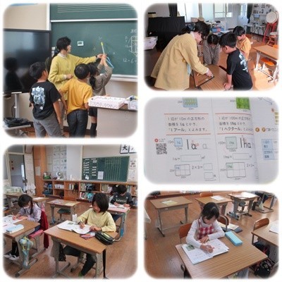 3年生は円の学習、4年生は面積の単位の学習をしました。一つ一つ丁寧に確認をしながら進めています。