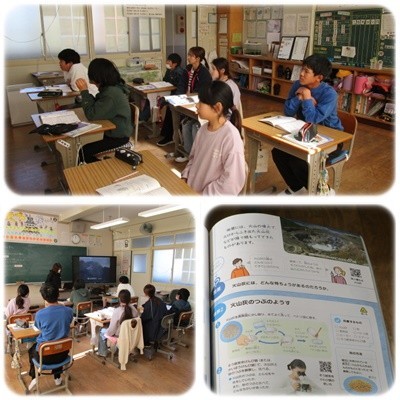 5・6年生の理科では、大地のつくりと変化について学習しました。地層がどのようにできるのか、火山の噴火や火山灰などと関連させて考えることができました。