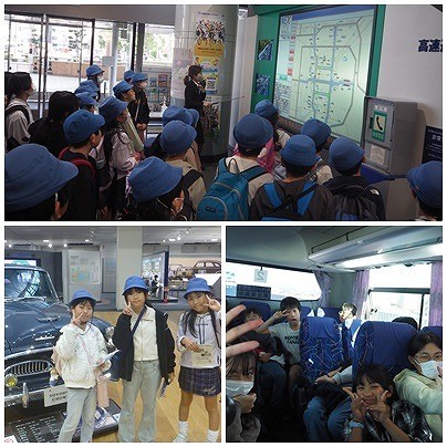 自動車の歴史や作り方を見て学んだり、高速道路を使うメリットなどを聞いて学んだりしました。