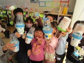 紙コップの中にどんぐりを入れて、マラカスを作りました。