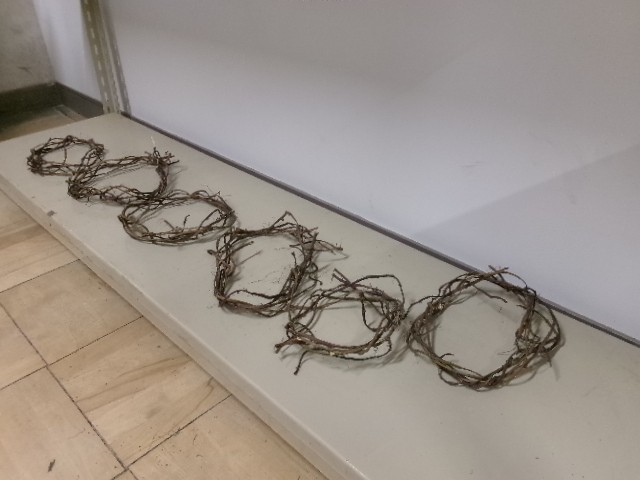 少しかたいツルを上手に丸くし、輪の形にすることができました。