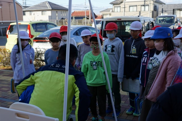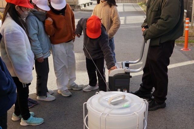防災倉庫の備蓄品を確認したり、マンホールトイレに座ってみたりしながら、防災に対する理解を深めました。