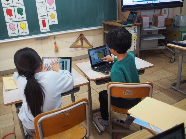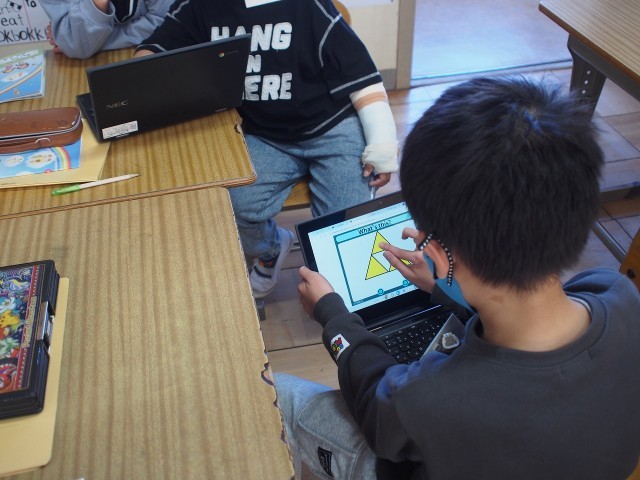 最近の外国語活動では「形」を英語を用いて伝える活動をしました。様々な種類の形を英語で話すので混乱しながらも一生懸命発音していました。