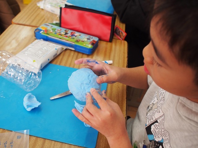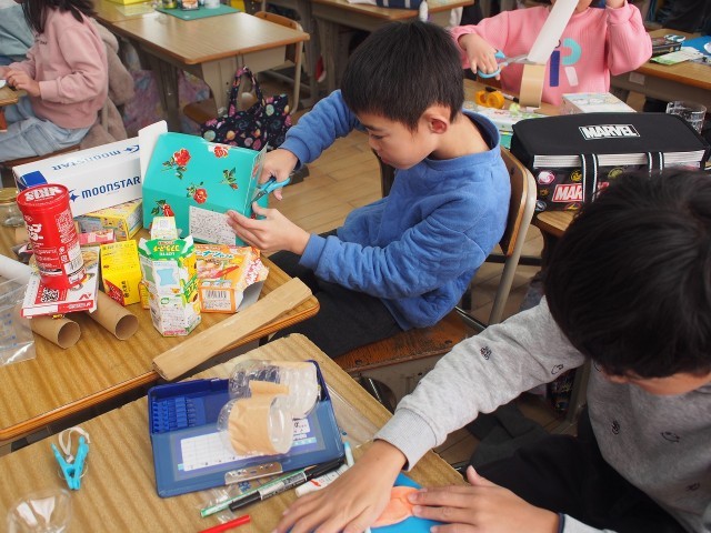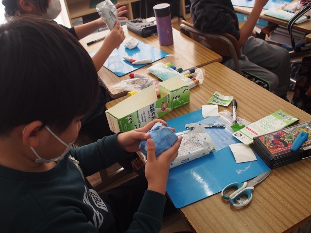 最近図工で空き容器の変身という授業行っています。