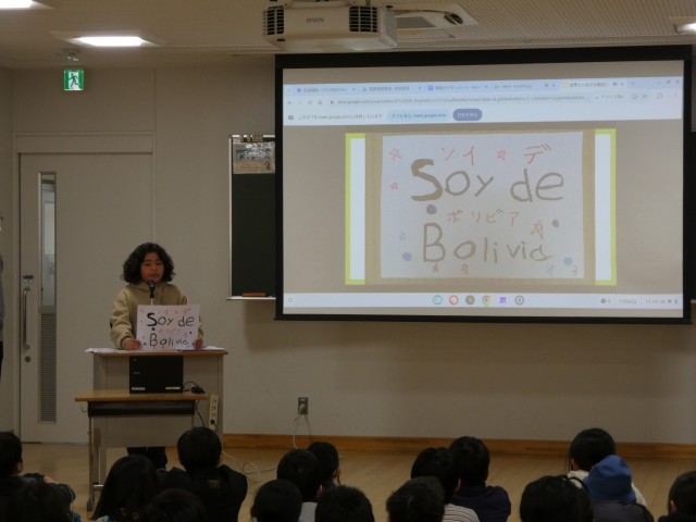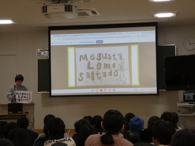 社会で学習した「多文化共生」の学習の一環として、外国の小学生の学校生活や暮らし、言葉について4年生全体で学習に取り組みました。