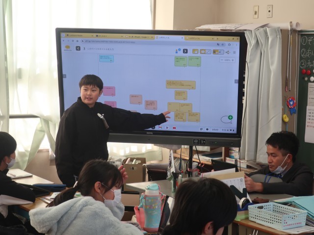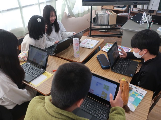 本日行われた社会の授業では、市役所の「企画広報課」から講師の先生をお招きし、犬山市の魅力や、よりよくするためのアイデアをみんなで考えました。授業の中ではタブレット端末を利用した意見交流をしました。