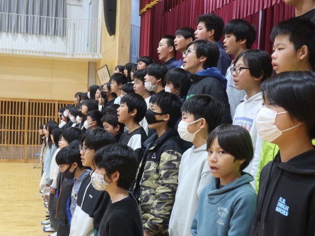合唱では、「鳥になって」の練習をしました。5年と6年で音程が違う所は、距離が離れていても、きれいなハーモニーを奏でることができていました。