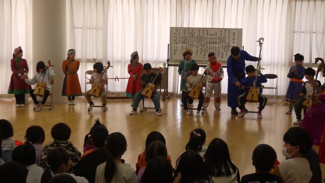 モンゴルでの生活について教えていただいたり、馬頭琴を弾かせていただいたり、本当に楽しい授業をしていただきました。