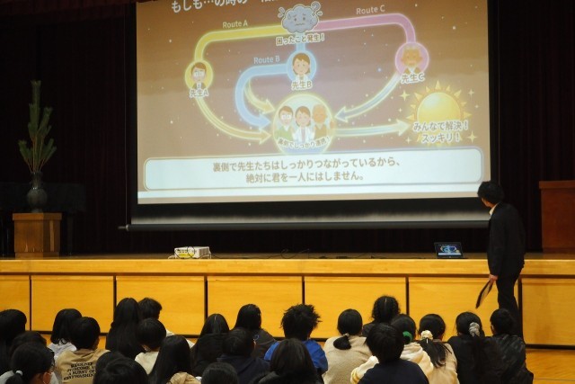 話の最後には質問の時間を設けたり、その後学年担任制についてのアンケートを行ったりしました。