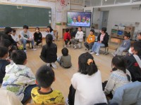 今日は、「入学説明会」です。保護者の皆様に説明をしている間、新入学児は1年生と交流会をしました。自己紹介の後、ゲームで楽しんでいます。1年生がわかりやすい言葉で上手に説明しています。1年生児童の成長を改めて感じました。