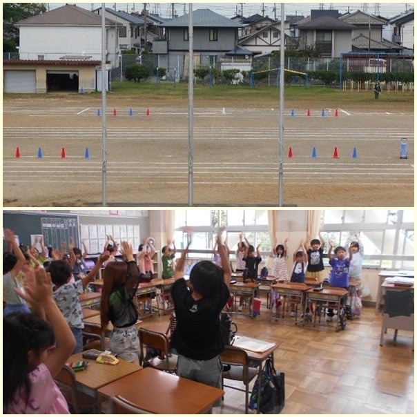 今月25日(土)の校内運動会に向けて、応援練習が始まりました。応援団が各教室へ出向いて応援の仕方を説明し、実際にみんなでやってみました。どの教室も初日から大きな声で盛り上がっていました。赤組、白組、ともにがんばってくださいね!運動場での練習もラインが引かれ、だんだん本番に近い形での練習となりますね。