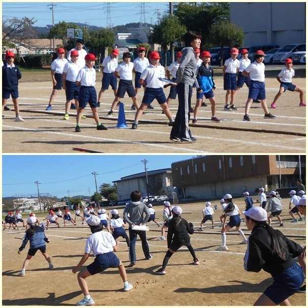 学年の心を一つにして、動きや姿勢をそろえようと練習に取り組んでいました。綱引きも含めて力強い演技を期待していますよ。