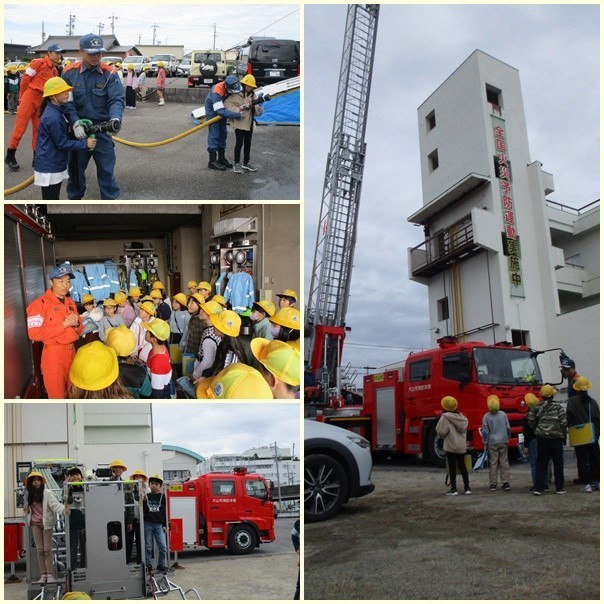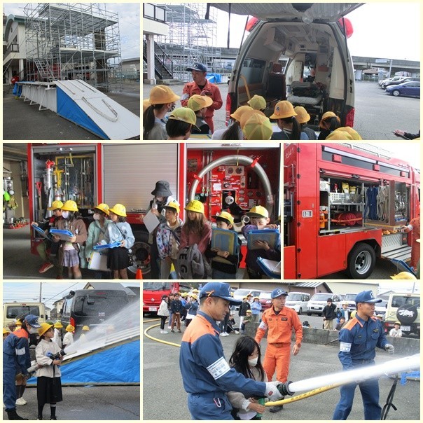 犬山消防の方にお世話になり、署内にあるものを見学したり、説明を聞いたり、放水体験等もさせていただきました。いざというときに、人々の命を守る役目を担っています。どんな工夫があり、どんなことを意識して仕事に向き合っているかなどたくさんのお話を聞くことができました。