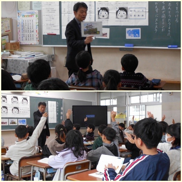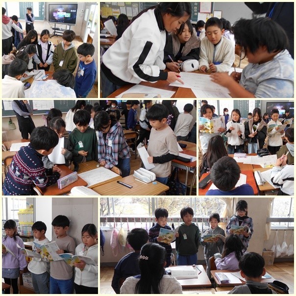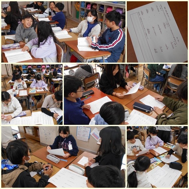 今日は犬山市の授業コーディネーターの先生による特別授業です。短歌・俳句をリズムよく音読しようというめあてで学習がスタートしました。初めて出合う短歌をどれか一つ選んでグループみんなで音読をしました。グループで意見を交流し合う場面では、「ナ(なるほど!)イ(いいね!)ス(すごいね!すばらしい!)」を合い言葉に、グループで上手に意見をまとめていきました。