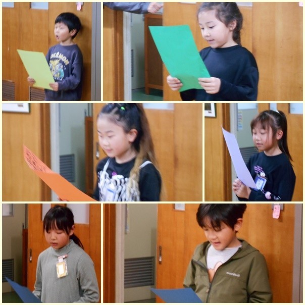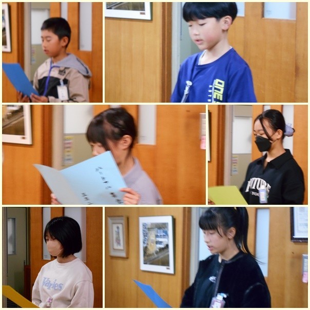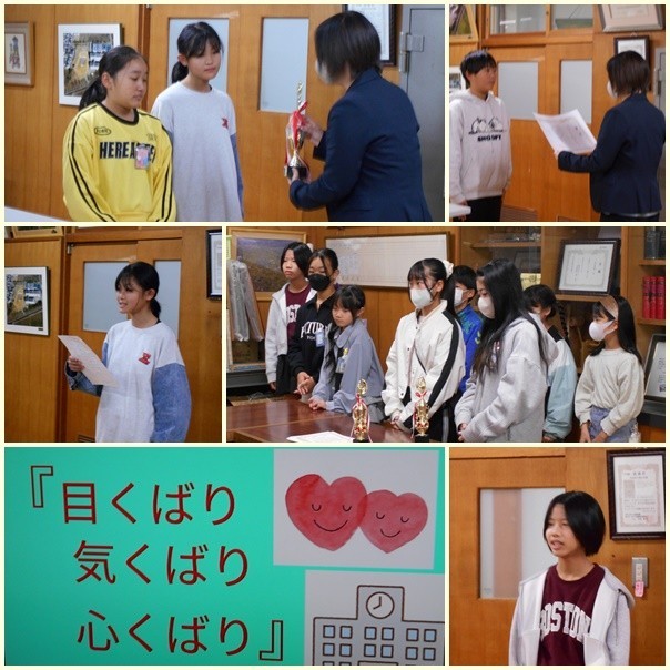 応募作品で受賞者と、ミニバスケットボールの表彰伝達を行いました。その後、児童会によるハートフル集会が開かれました。各学年代表の12名が、日頃の感謝の気持ちを作文にして発表しました。心が温かくなる、ありがとうの気持ちがたくさん詰まった作文でした。校長先生からは、人権はみんながもっているもので、お互いを尊重し合うことが大切であるというお話がありました。「目配り 気配り 心配り」に心がけたいですね。