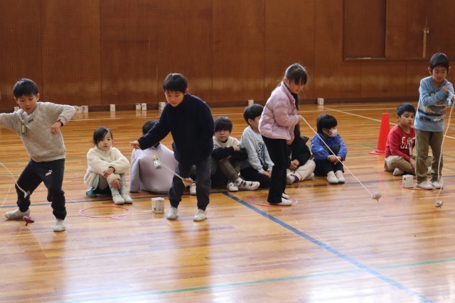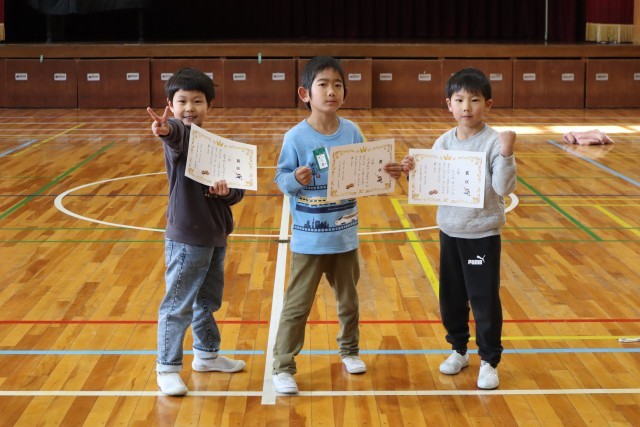 こままわし大会を行いました。こまを上手く回すことができて喜ぶ児童や上手く回すことができず悔しがる児童など様々な姿を見ることができました。お家での練習に付き合ってくださり、ありがとうございました。