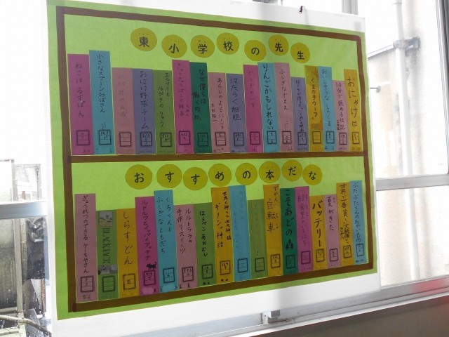 図書館の入り口には、東小の先生たちのおすすめ本が紹介されています。今年もたくさん図書館を利用して本に親しみましょう。