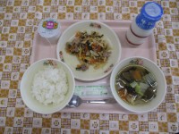 【今日の献立】 ・牛乳 ・きのこご飯(麦ご飯) ・さんまのみぞれ煮 ・チンゲンサイのたくあん和え ・麩玉汁