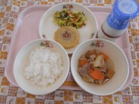 冷やし中華は野菜もたっぷり、酢のきいたスープでのどごしもよく、夏にぴったりの献立ですね。今日の唐揚げはカレー風味のスパイシーチキン。食欲もUP!