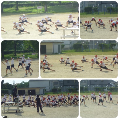 4年生がソーラン節の練習をしています。入場から隊形移動を確認し、力強く踊っていました。本番が楽しみです。