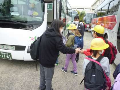 乗車前の手指消毒など気を付けながら、楽しくしっかり学習してきます。