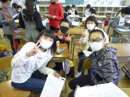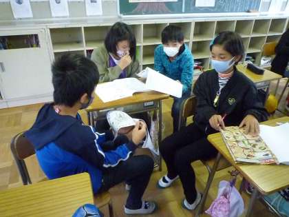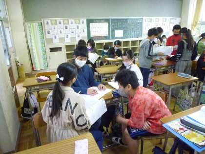 1組が出かけたあと、2組では最終ミーティングが行われていました。修学旅行での班別行動の練習になりますね。