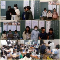 3年生の図工「読書感想画」の作品作りです。水彩絵の具で描いたあとに、色紙で葉っぱを作って貼り、木の質感を出しています。
