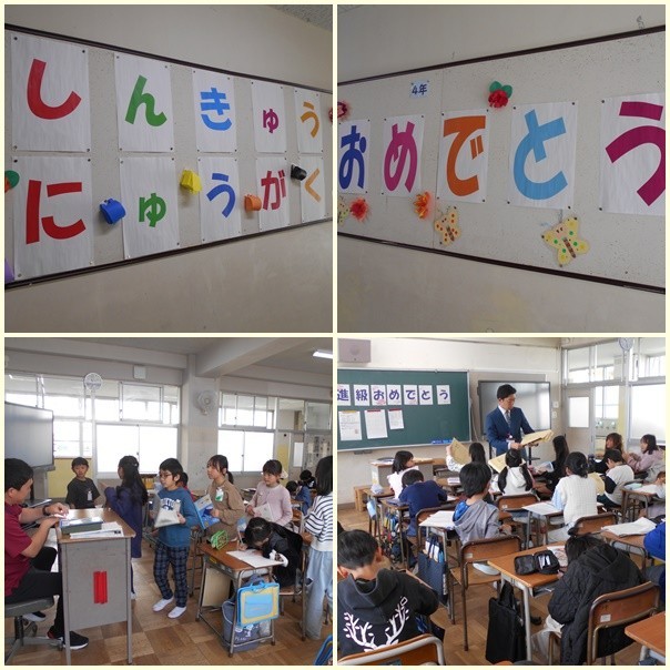 1~5年生の修了式が行われました。各学年の代表児童が校長先生から修了証を受け取りました。勉強も運動も行事もしっかり取り組むことができました。生活指導担当の先生からは、自転車の乗り方やルールについてのお話と、ネット上のモラルについてのお話がありました。そして、教務主任の先生からは4月からの登校についての確認がありました。明日から春休みになります。今年度の振り返りと来年度に向けての準備期間となるよう、充実した休みにしてくださいね。