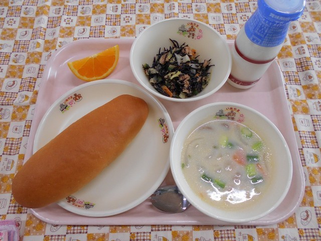今日はみんなが楽しみにしていた揚げパンでした。さらに、ココアときなこのセレクトです。セレクトの結果は、ココアが250で、きなこが101でした。食べる楽しみだけでなく、選択する楽しみもありますね。