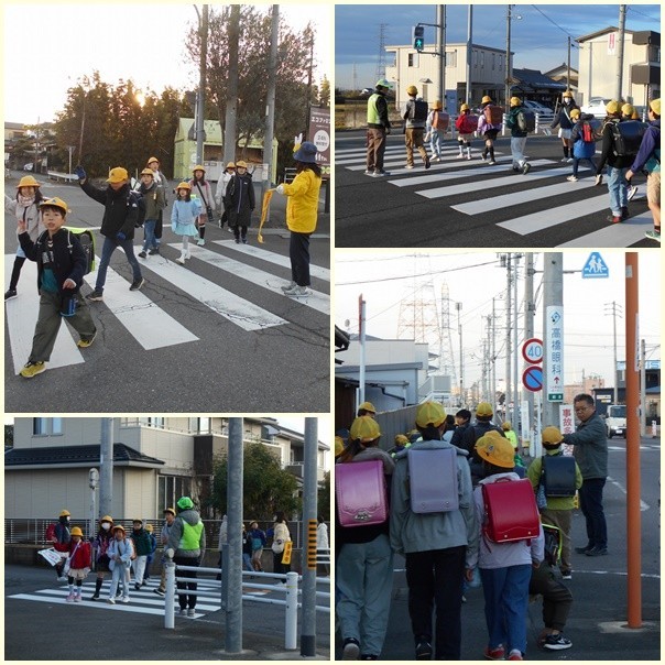 年末の交通安全県民運動の一環として、交通事故防止を図るために、市で一斉に街頭大監視が行われました。保護者の方や地域の方、コミュニティ等、皆で一緒に交通安全の呼びかけと挨拶運動を合わせて行い、いつも以上に「おはようございます」の声がさわやかに聞こえてきました。