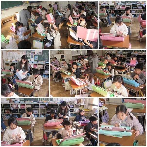 5時間目の様子です。4年生は算数の学習に取り組んでいました。計算のきまりを使って工夫した計算の仕方に挑戦していました。工夫すると計算が楽になりますよね。3年生は道徳の授業でした。自分の経験を踏まえながら、何がいけなかったのか、どうすればよかったのかを考えました。2年生は1年生とのおもちゃ遊びの練習を行っていました。楽しんでもらえるとうれしいですね。