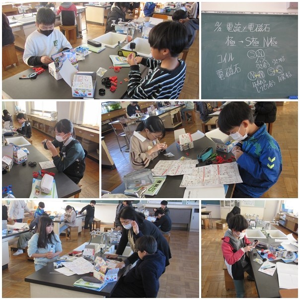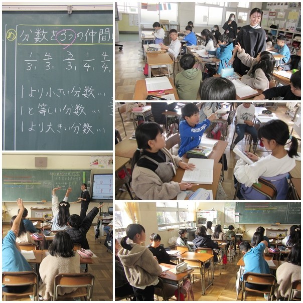 4年生算数、5年生理科の学習の様子です。算数では分数の仲間分けを考えていました。理科では教材を使って、電流と電磁石 の学習を行っていました。とても集中して取り組んでいました。