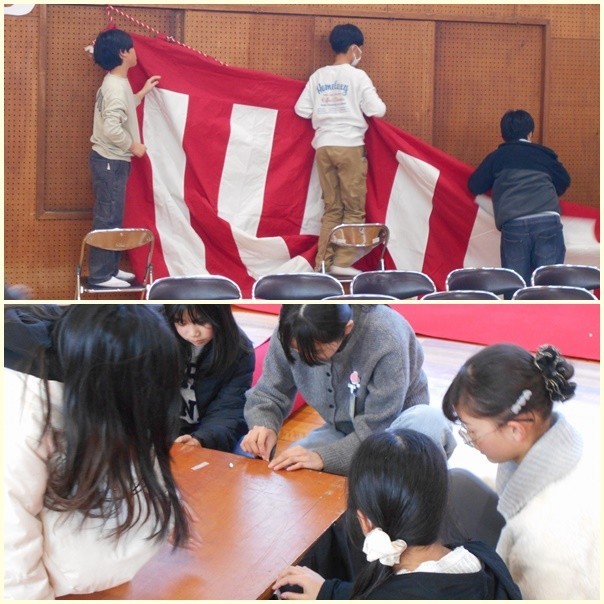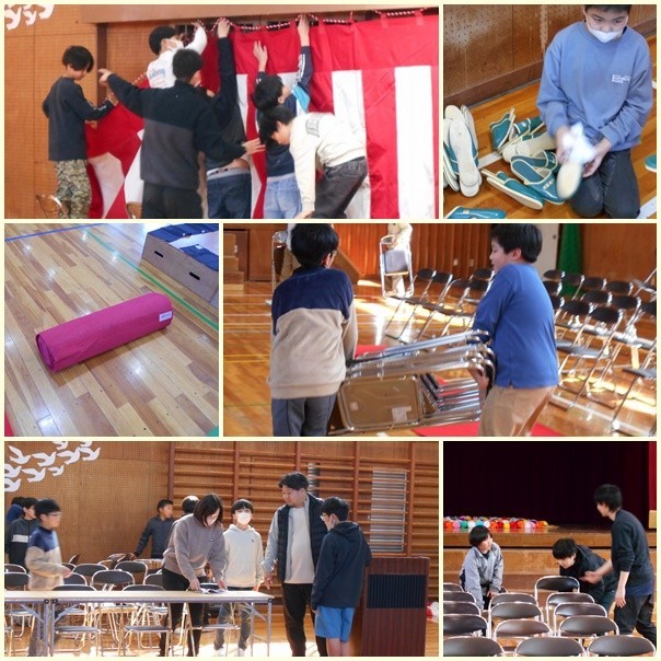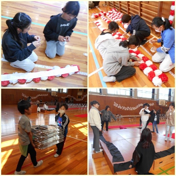 午後から、5年生と職員で卒業式の式場設営を行いました。5年生はそれぞれの分担箇所で大活躍です。厳粛な儀式なので、椅子並べも一つ一つ気を遣います。みんなで協力して丁寧に作業を進めていました。