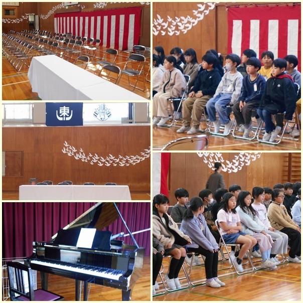 午前中に卒業式の予行が行われました。当日は在校生を代表して5年生が参加をしますが、今日は4年生も参加しました。卒業生への思いを込めて会場が準備されました。当日は、主役の晴れの舞台となるようみんなで温かな式にしたいと思います。